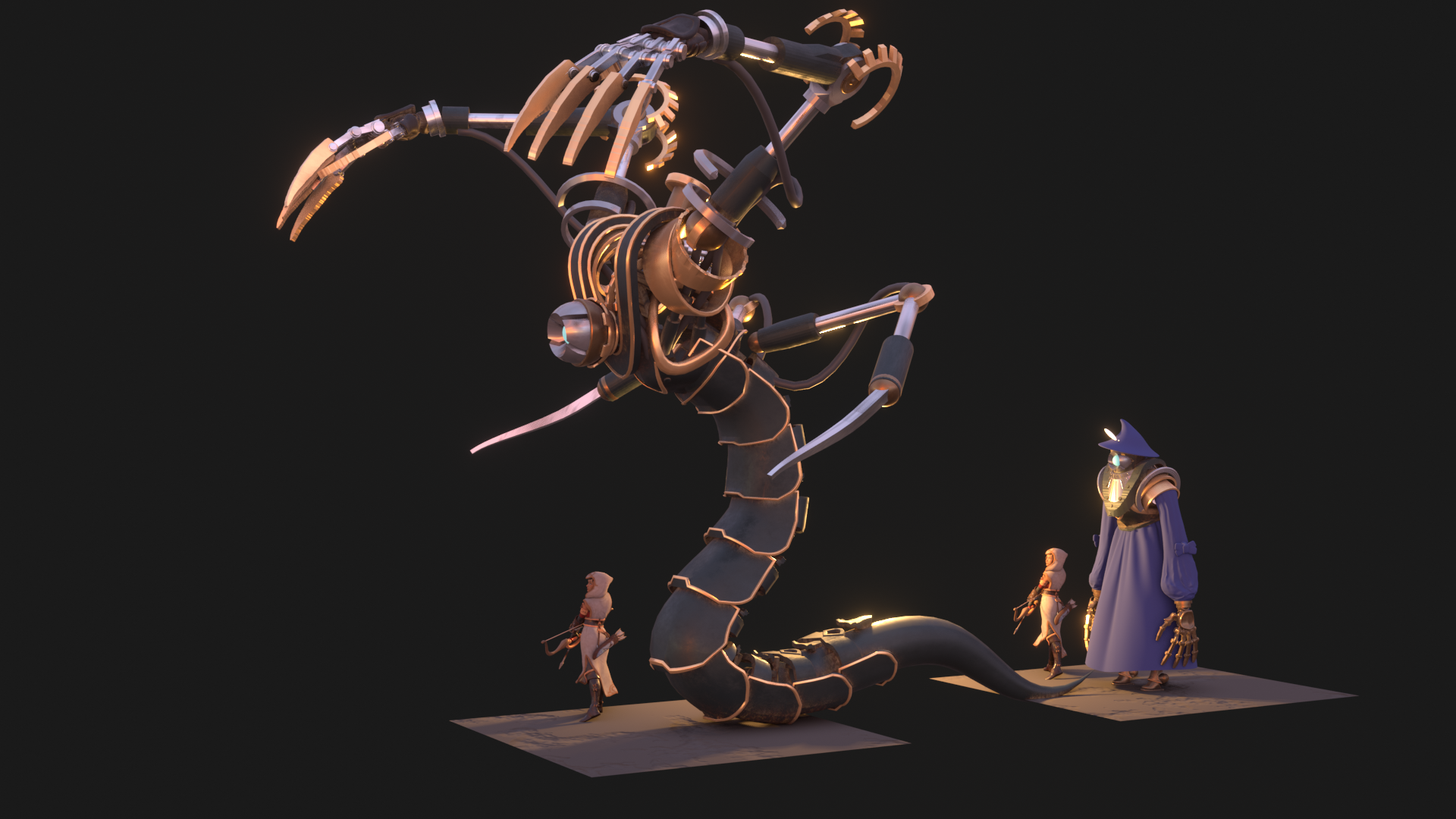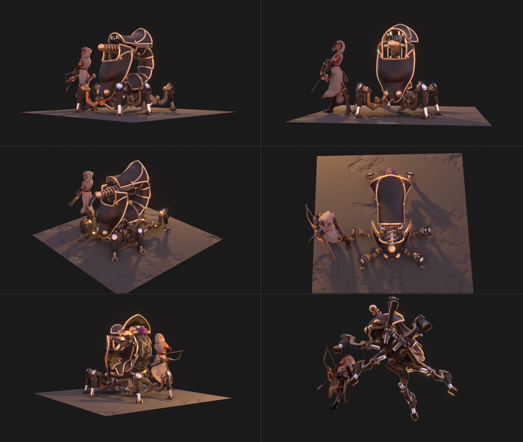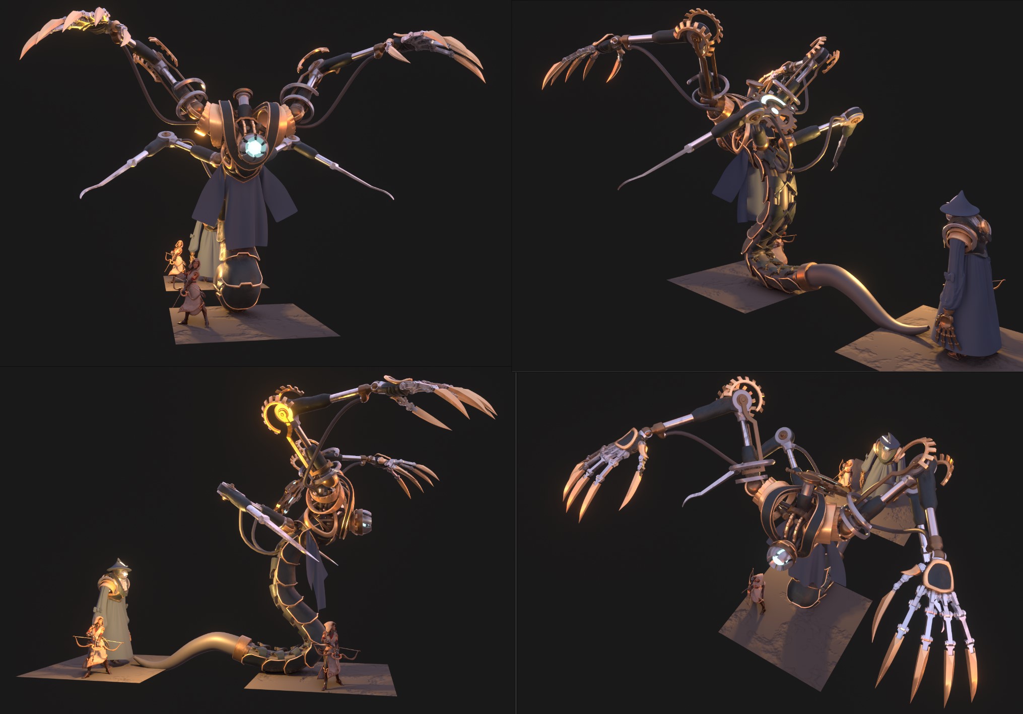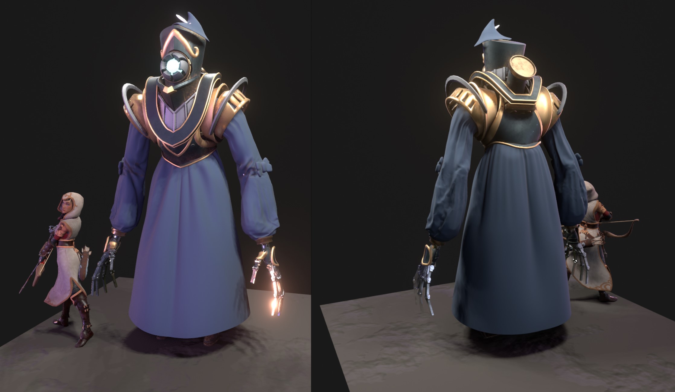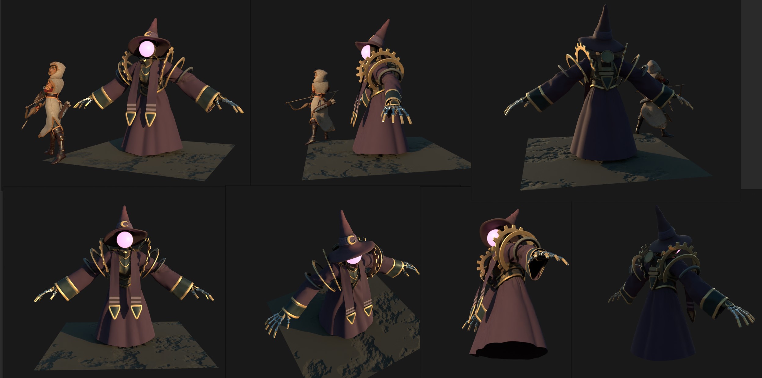 Various character concepts I made for the Trine 5. As the game is a fundamentally a puzzle game, the design process was balancing between the gameplay requirements and the visual look. These varied from the general gameplay and story themes even to specific collision shape the character had to fit into in certain phases of the combat.