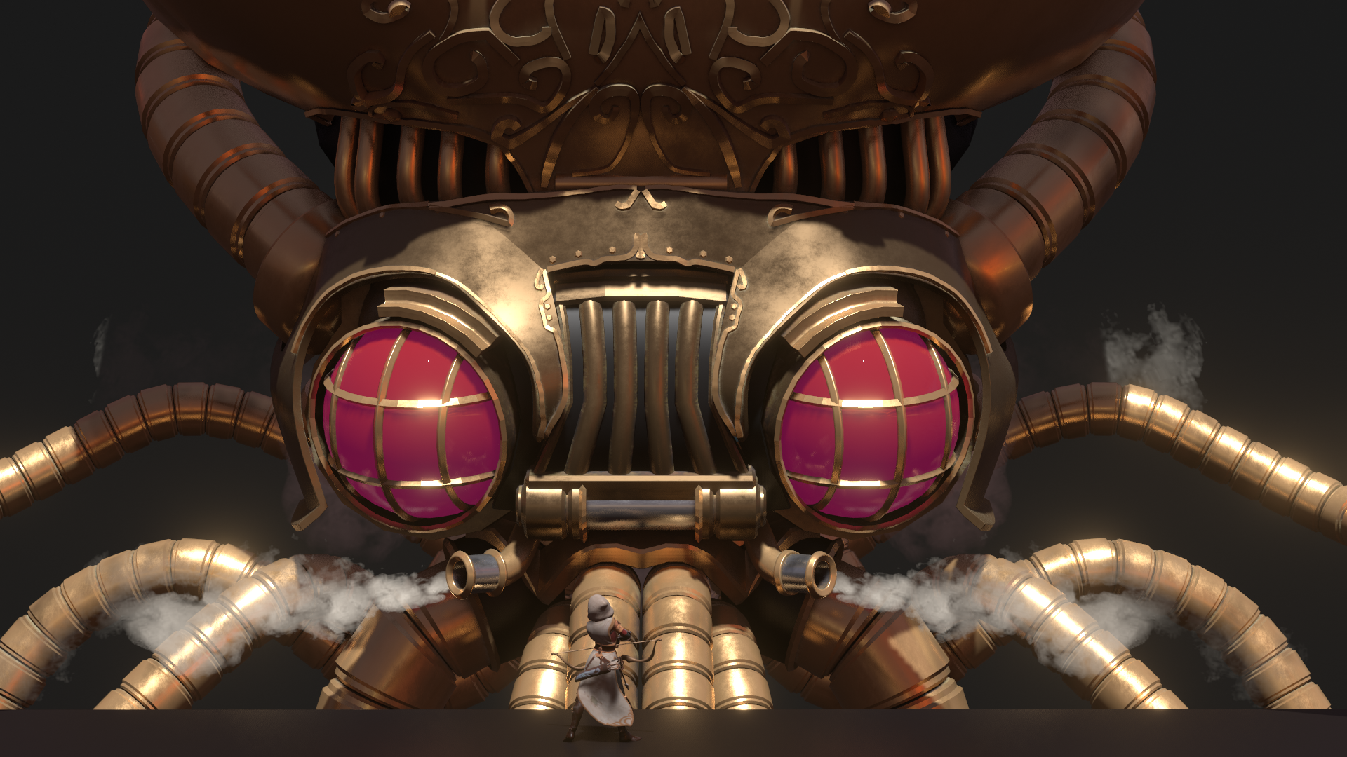 The process started from an in depth discussion with the art director and the writer, but also the designer who was responsible for the fight in game. I worked with them closely to end up with a design that succeeded in bringing together the story and gameplay requirements.
