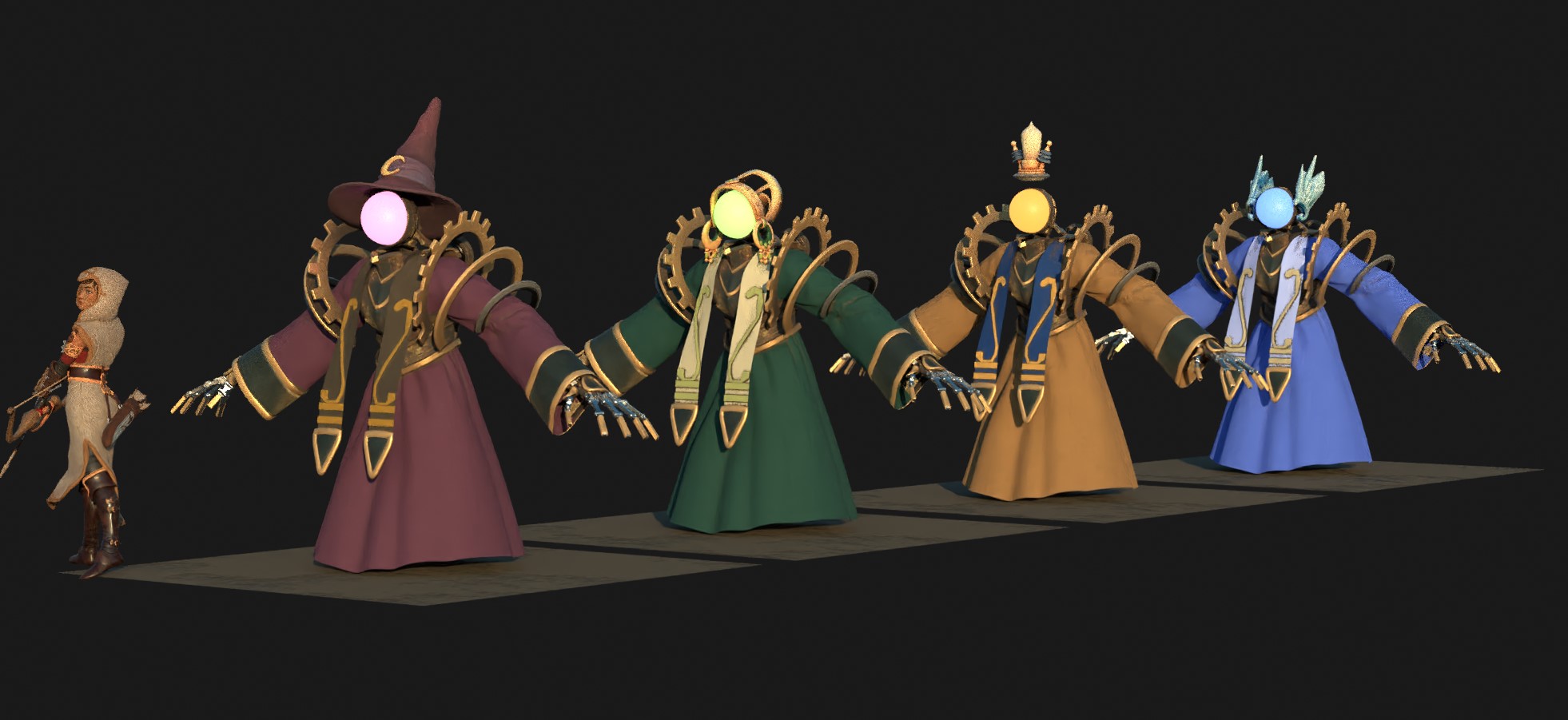 As well as making both 2d and 3d concepts for the characters, I made a lowpoly version so that the models could be tested ingame, before the final assets were made. This reduced the need for expensive changes further in the prooduction.